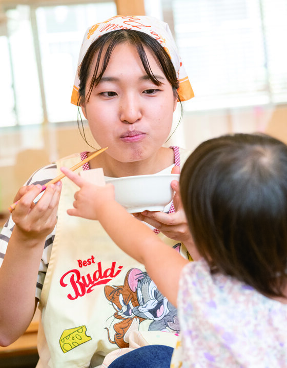 大学2年の時に実習させていただいたことがきっかけで新栄会を知りまし た。遊ぶ場所や食事のタイミングなど、子ども一人ひとりの興味やペース に合わせて応じていて、子どもたちが満足して過ごしている様子が何より よく伝わってきたからです。子どもの笑顔から居心地の良さを感じ、私も 一緒に味わいたいと強く思いました。